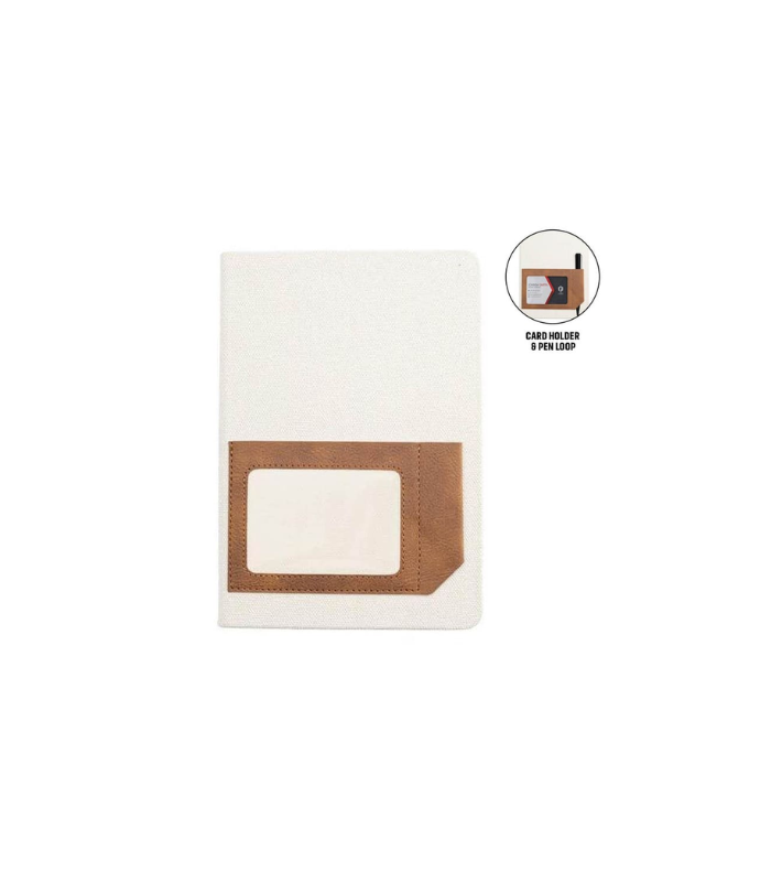 9. ADANA – Santhome Recycled Canvas A5 Hard Cover Notebook with PU Pocket – Beige