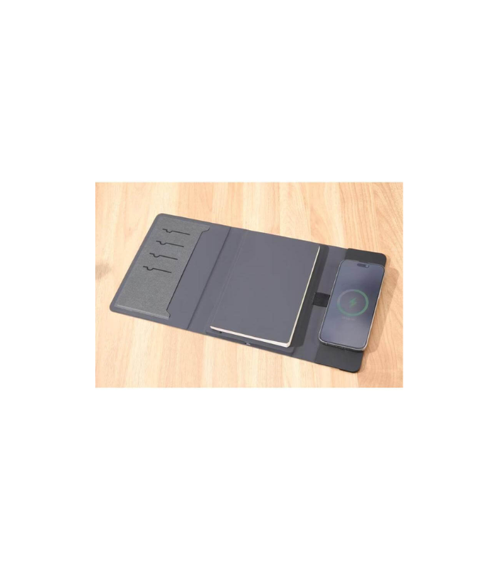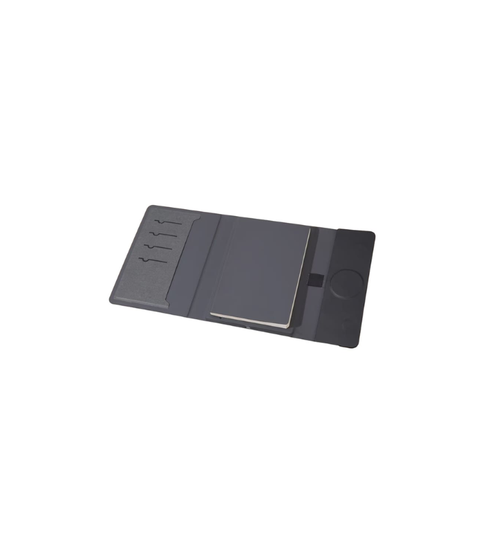 This innovative notebook portfolio doubles as a 10,000mAh magnetic – compatible wireless power bank, offering 15W wireless magnetic charging for your devices on the go. Made from RCS-certified recycled PU, it features 64 sheets refillable notebook of 100g paper for smooth writing, a pen loop and multiple card slots, combining functionality and organization with sustainability. Elegantly packaged in a premium gift box, it’s the perfect blend of tech and stationery for work, travel, or gifting.