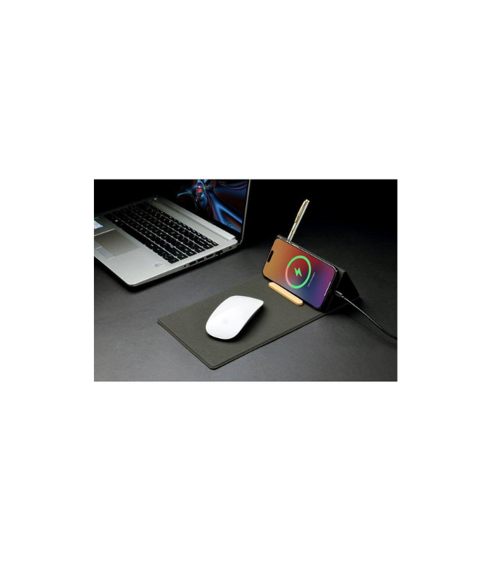 Memorii® Folding Wireless Mousepad & Desk Organizer is an elegant and compact desk accessory made from RCS-certified recycled PU. It includes a 15W wireless charger and phone stand with a bamboo stopper, mousepad and pen stand. Folds flat and can be easily carried on the go. Blace is a CHANGE ZERO product, which means that it is developed with a net zero carbon footprint – By using RCS-certified recycled PU materials, we reduce 14% carbon emissions from material use (verified by ecoact®). Further, we offset the balance 1.08 kgCO2eq per unit by financing renewal energy projects through Climate Partner, making it a carbon-zero product. Packed in an elegant gift box.