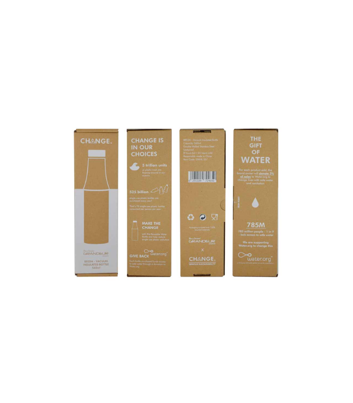 Packed in a stylish recycled box that educates about making the Change from single-use to reusable products.