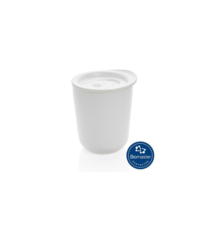 This simplistic designed stainless steel tumbler is not only aesthetically beautiful but is also protected with Biomaster, an Anti-Microbial agent that provides a second line of defence against harmful bacteria. The body and lid are both treated and it’s IN the product, not ON the product which will give you permanent protection. This product is tested in accordance with ISO 22196 for Anti-Microbial effectiveness. Biomaster does not affect the recyclability of the item. The product also includes Verimaster a unique tracer that is built into the material to prove that the item is treated with Biomaster. With closable lid. PP inner, stainless steel outer. Capacity 250ml. BPA free.