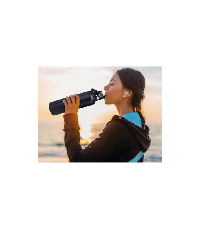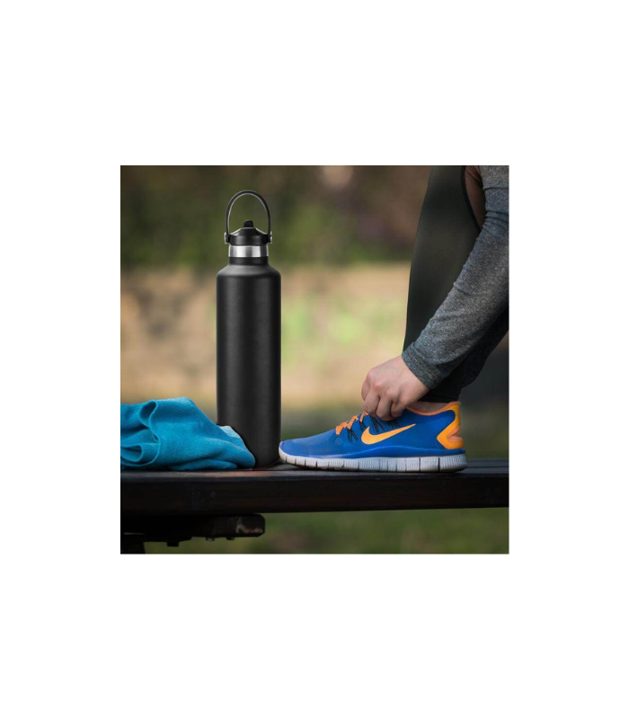 Cervo is a vacuum stainless steel water bottle with 1L capacity and fliptop sports lid + straw, making it perfect for sports or on-the-go activities. Made with double-walled vacuum insulated stainless steel with SS304 inside and SS201 outside. Keeps drinks hot for 6 hours and cold for 12 hours. With easy-to-carry handle. Powder coating finish. Packed in gift box