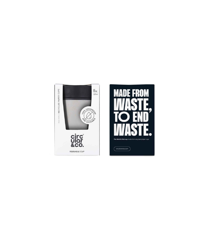 Circular Cups are the world’s first circular solution for reusable coffee cups. The Circular Cup is made from 6 recycled single-use paper cups, is designed for 10 years of use, and 100% recyclable at the end of life, contributing to a circular economy for coffee cups. Designed with practicality and circularity in mind, our sustainable travel mug is 100% leakproof with locking lid mechanism, providing peace of mind whilst you’re on the go. Circular Cups unique push lid mechanism minimises spills and offers one-hand opening. Enjoy the full coffee flavour with 360-degree drinking. Every purchase of a Circular&Co. Reusable Coffee Cup funds a sustainable solution to global waste. Packed in a gift box.