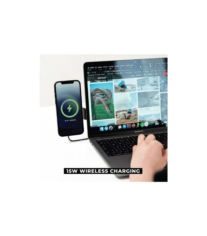 This 2-in-1 kit consisting of a metal phone or tablet mount for your laptop and a matching 15W universal magnetic wireless charger that can charge any wireless compatible smartphone, while it is mounted alongside your laptop. Both items are made from CNC polished aluminum with N52 magnets inside. The universal magnetic wireless charger comes with an extra magnetic ring that can be attached to any wireless charging smartphone, effectively converting them into a magnetic charging compatible device. You can now benefit from hands-free phone/tablet accessibility, convenient use of dual screens and fast universal wireless charging – all at the same time. This kit will help boost your productivity while working, studying, or on the go.