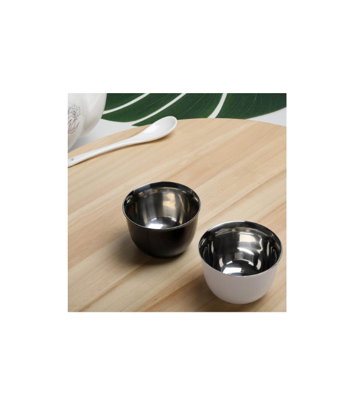 A set of 2 Arabian coffee cups (known as kahwa or qahwa cups) made from durable double walled 18/8 stainless steel inside and outside for long lasting thermal insulation. Indulge in the rich traditions of serving the famed Arabic tea or coffee with your own portable Kahwa cup! Each cup holds 90ml of liquid.