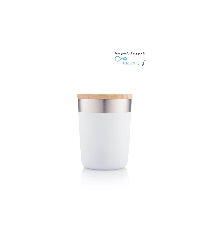 Hans Larsen® Laren Vacuum Insulated Mug with bamboo lid is part of the CHANGE Collection, and as a result, contributes to Water.org – a global NGO that provides millions with access to safe water and sanitation. By giving to Water.org, you are giving a GIFT THAT GIVES BACK. Laren is double walled, leakproof, stainless steel reusable coffee mug with 5 hours hot, and 15 hours cold storage. Fits most coffee machines. Scandinavian design. Content: 300ml