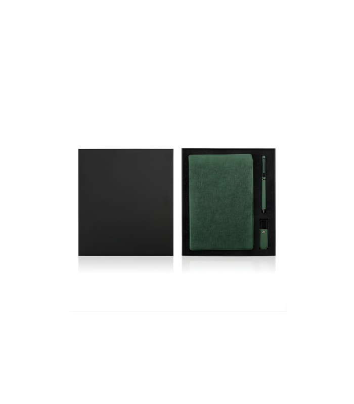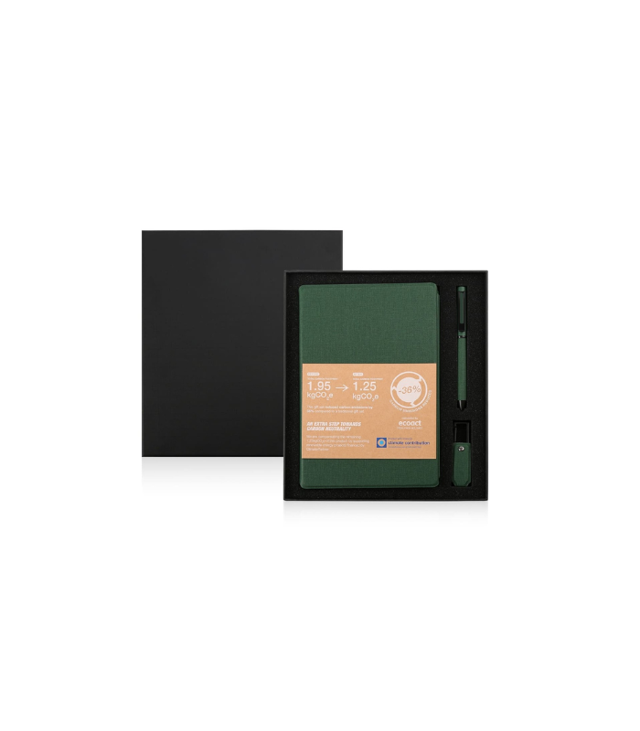 LENZEN – CHANGE ZERO Sustainable Gift Set with Refillable Notebook, Pen & USB Keychain – Green