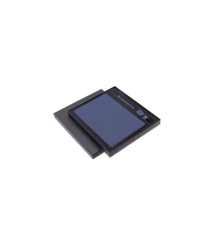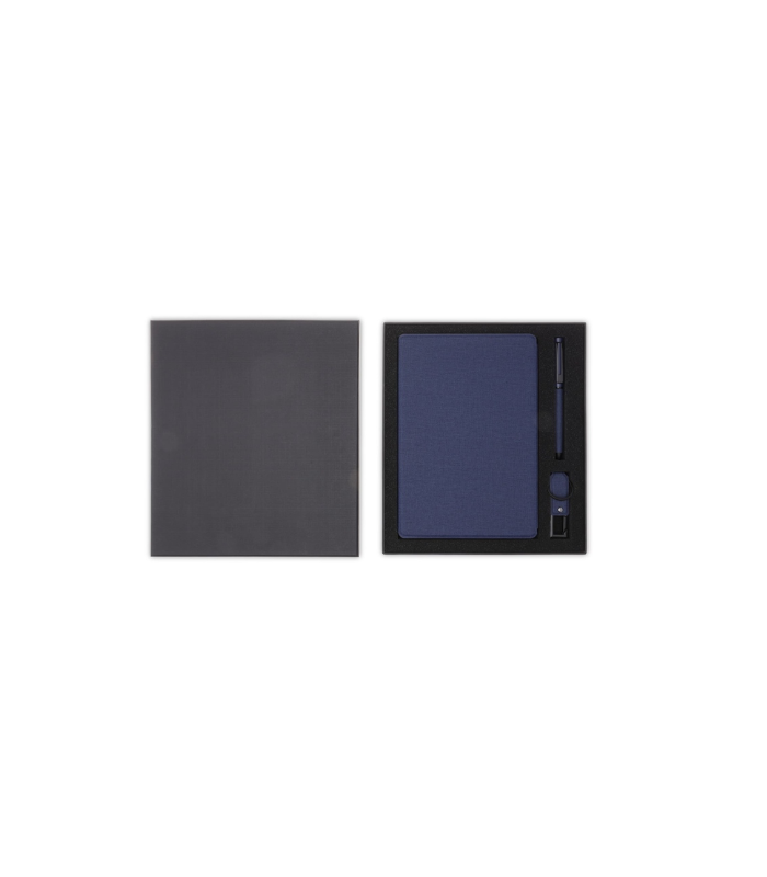 Lenzen is a CHANGE ZERO Sustainable Gift Set containing a GRS-certified recycled PU refillable A5 ruled hardcover notebook, matching recycled PU ball pen and recycled PU keychain with 32GB USB flash drive. Elegantly design, and sustainable by nature. Lenzen is a CHANGE ZERO gift set, which means that it is developed with a net zero carbon footprint – By using GRS-certified recycled PU materials, we reduce 37% carbon emissions by recycled material use (calculated by ecoact®). Further, we offset the balance 1.23 kgCO2eq per unit by financing renewal energy projects through Climate Partner, making it a carbon-zero product. Packed in an elegant gift box.Specifications for LENZEN – CHANGE ZERO Sustainable Gift Set with Refillable Notebook, Pen & USB Keychain – Navy