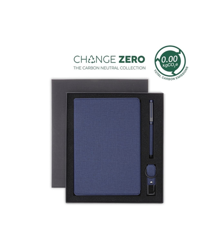 LENZEN – CHANGE ZERO Sustainable Gift Set with Refillable Notebook, Pen & USB Keychain – Navy