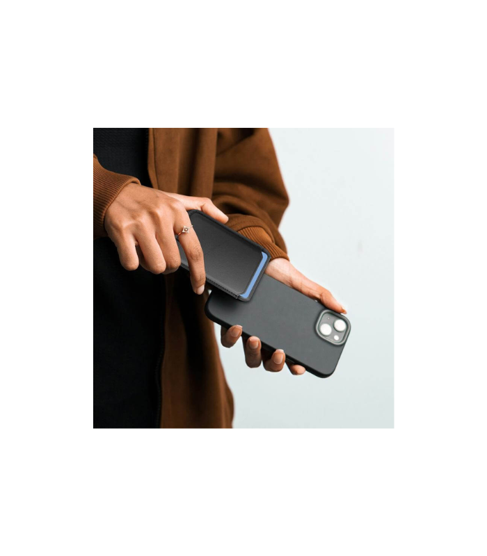 MAG3 is a magnetic PU card holder that snaps to your MagSafe smartphones and can hold up to 2 cards. It also doubles as a 3-in-1 magnetic wireless charger supporting 15W, 5W, and 2.5W output for wirelessly charging smartphones, wireless earbuds or iWatch. Packed in a gift box and includes a charging cable.