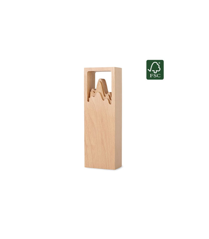 This limited edition sustainable trophy is entirely made from 100% FSC-certified upcycled wood, creating value from waste, while advocating for sustainable giving. Engrave or print a personalized message on any part of the trophy to recognize achievement or success. Packed in an elegant FSC-certified paper box with a thank-you card inside.
