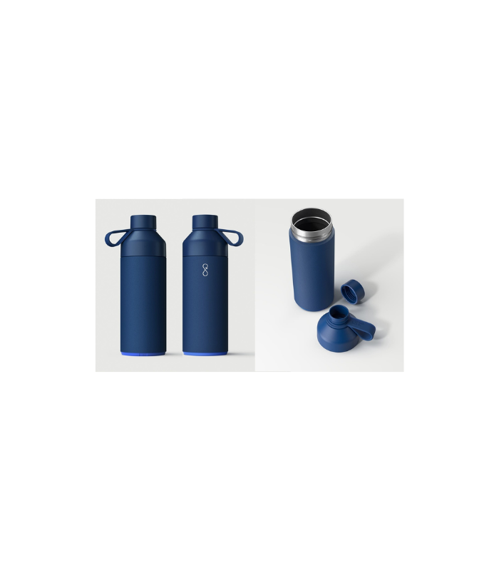 Red Dot Design award-winning Ocean Bottle keeps cold drinks cold, and hot drinks hot. Made from double wall vacuum-insulated stainless steel and recycled content. The anti-leak dual opening lid makes filling and cleaning a breeze. Plus, unlike most reusable bottles, Big Ocean Bottle is 100% dishwasher safe.