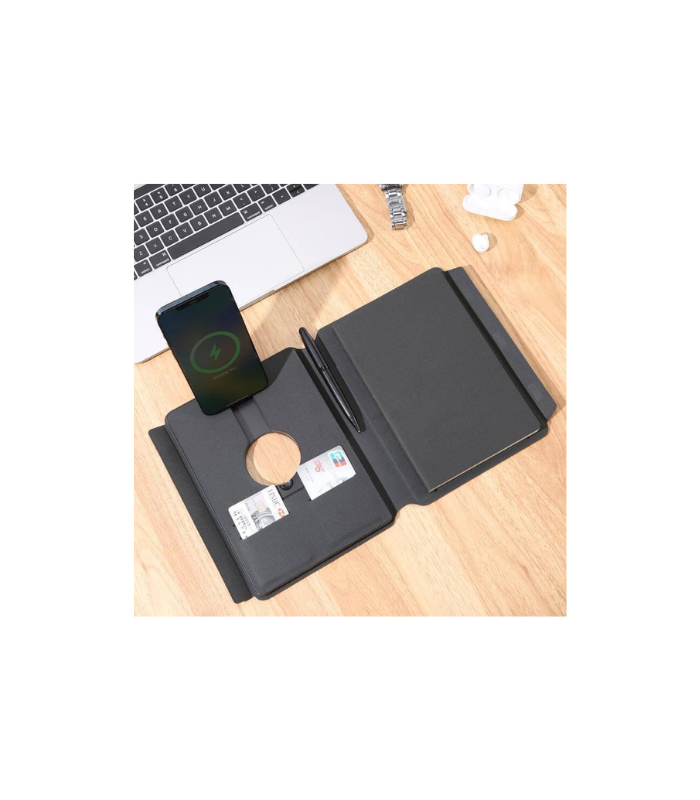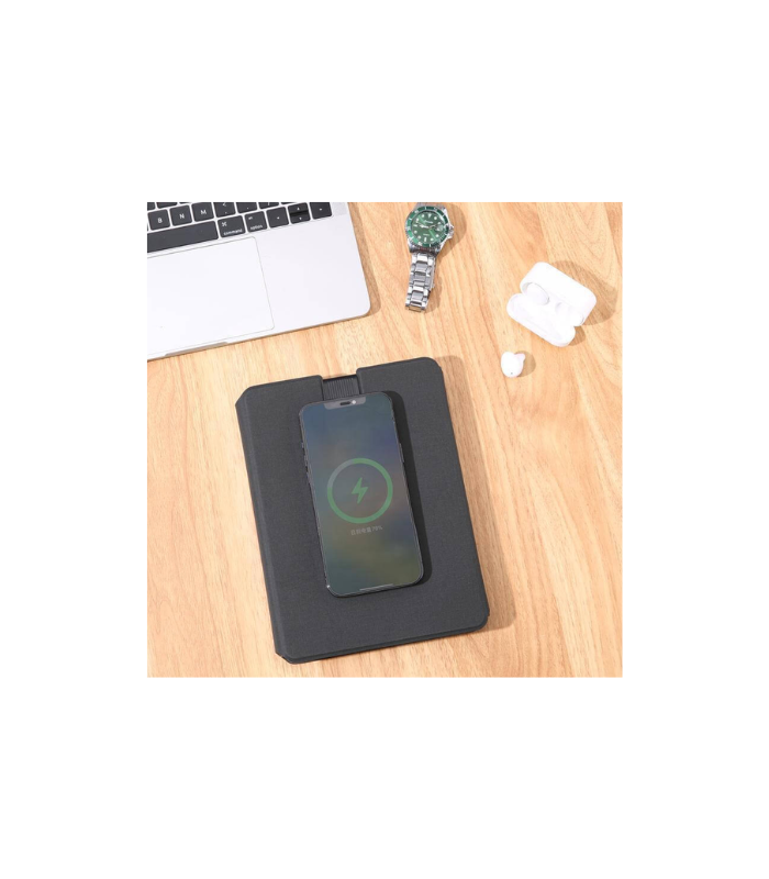 Santhome® MagSafe Smart A5 Organizer combines design elegance with latest magnetic technology. Includes a 10,000mAh powerful powerbank with a Smart 15W Mag-Wireless Charger for phone or watch, 32GB in-built USB flash drive, 64 sheet removable notebook and various card pockets, Onex is a masterpiece of sustainable and modern office technology – just snap an iPhone 12 or higher model for smart wireless charging. Onex is a CHANGE ZERO product, which means that it is developed with a net zero carbon footprint – By using RCS-certified recycled PU materials, we reduce 3% carbon emissions from material use (verified by ecoact®). Further, we offset the balance 3.87 kgCO2eq per unit by financing renewal energy projects through Climate Partner, making it a carbon-zero product. Packed in an elegant gift box.