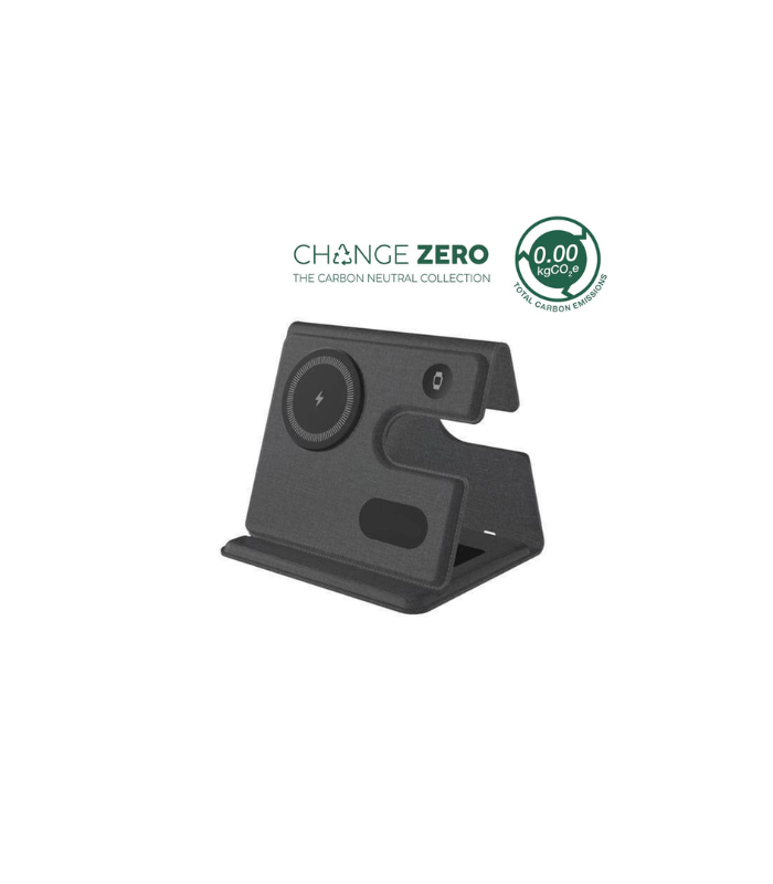PLANA – CHANGE ZERO Recycled 3-in-1 Wireless Charger Station – Black