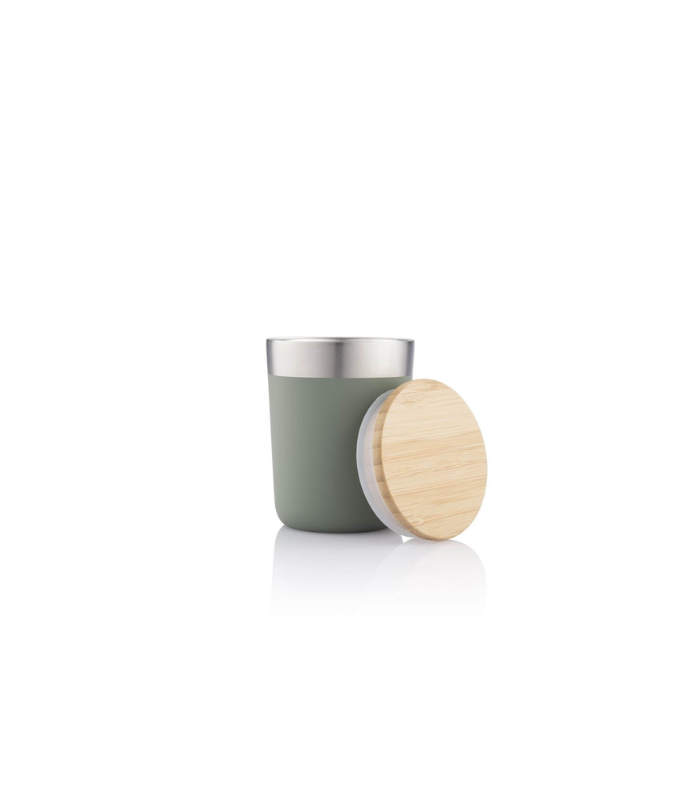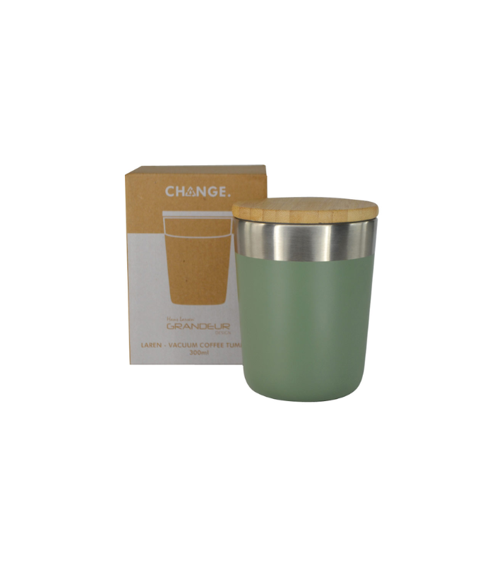 Hans Larsen® Laren Vacuum Recycled Insulated Mug with bamboo lid is relaunched with 61% RCS-certified recycled stainless steel and 37% FSC-certified bamboo lid. It is also part of the CHANGE Collection, and as a result, contributes to Water.org – a global NGO that provides millions with access to safe water and sanitation. By giving to Water.org, you are giving a GIFT THAT GIVES BACK. Recycled Laren (R-LAREN) is double walled, made from RCS-certified recycled stainless steel, leakproof, stainless steel reusable coffee mug with 5 hours hot, and 15 hours cold storage. Fits most coffee machines. Scandinavian design. Content: 300ml