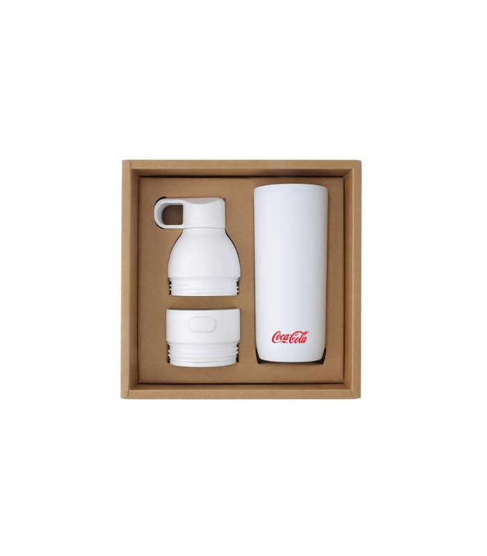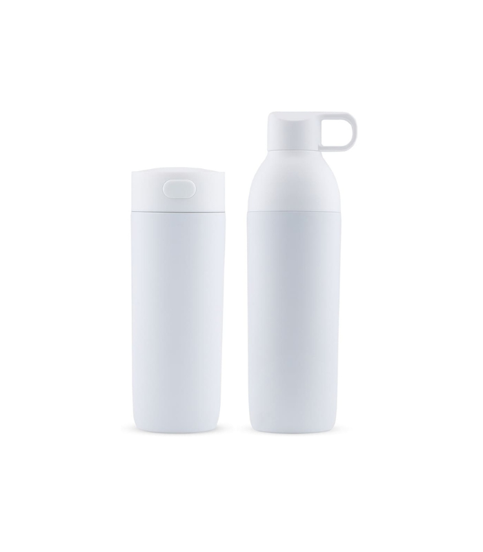 RUVO by Hans Larsen is a 2-in-1 modular hydration set with interchangeable water bottle and leakproof coffee tumbler lids, double walled vacuum insulated stainless steel (SS304 inside and outside) and robust construction quality. Switch comfortably between both lid types for a bottle or tumbler drinking experience. This set is perfect for drinks of all temperatures, and the wide mouth makes it easy to add ice cubes. Packed in a sustainable, recyclable kraft box. Capacity: 400ML