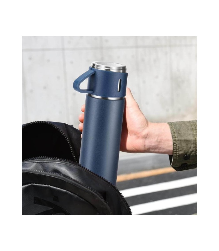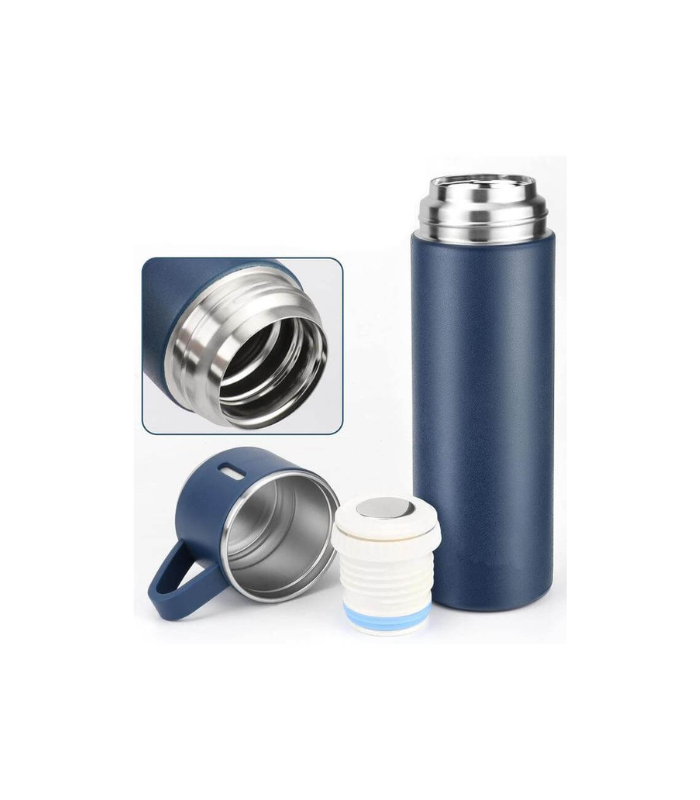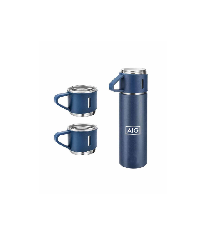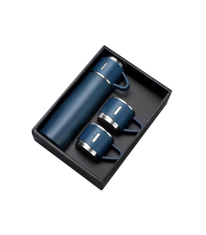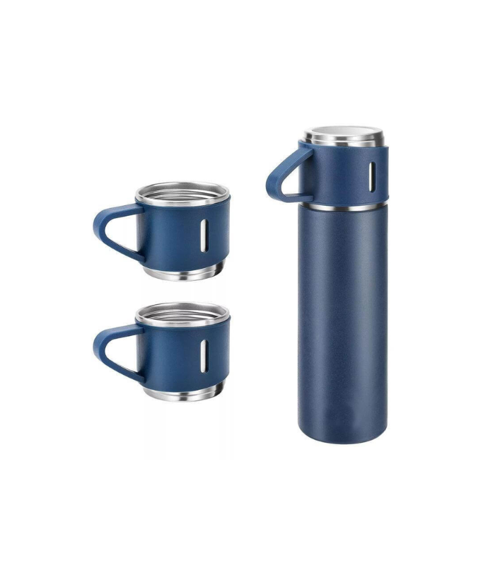SAFFLE – Giftology Family Set of Vacuum Flask & Two Cups – Navy Blue