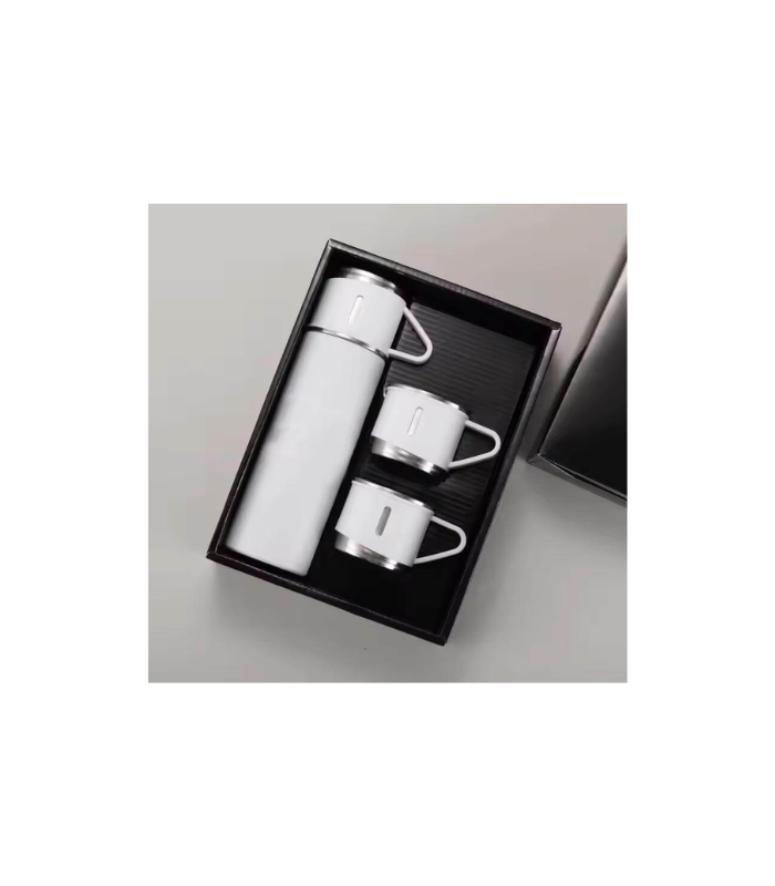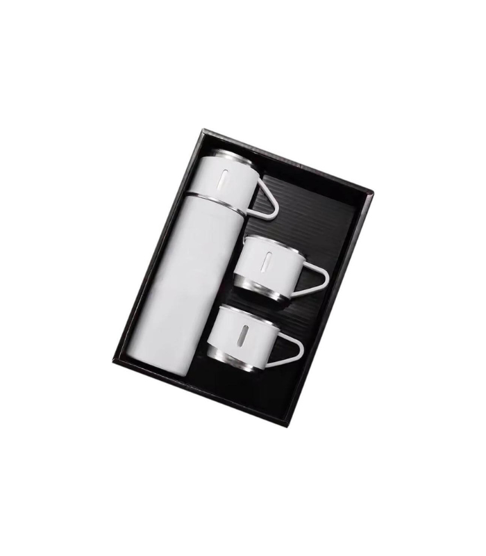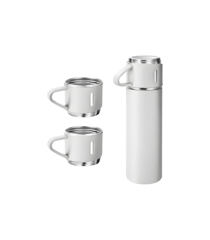 SAFFLE – Giftology Family Set of Vacuum Flask & Two Cups – White