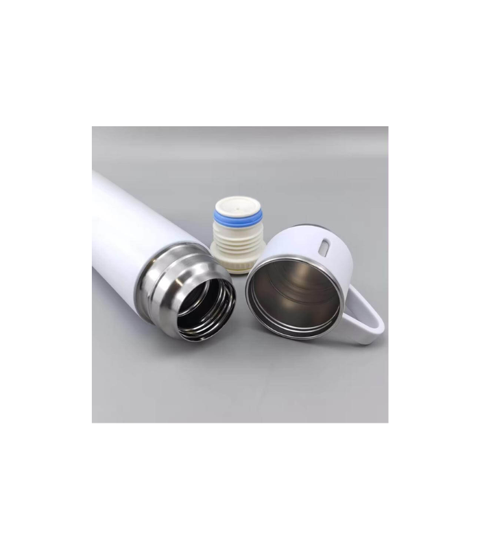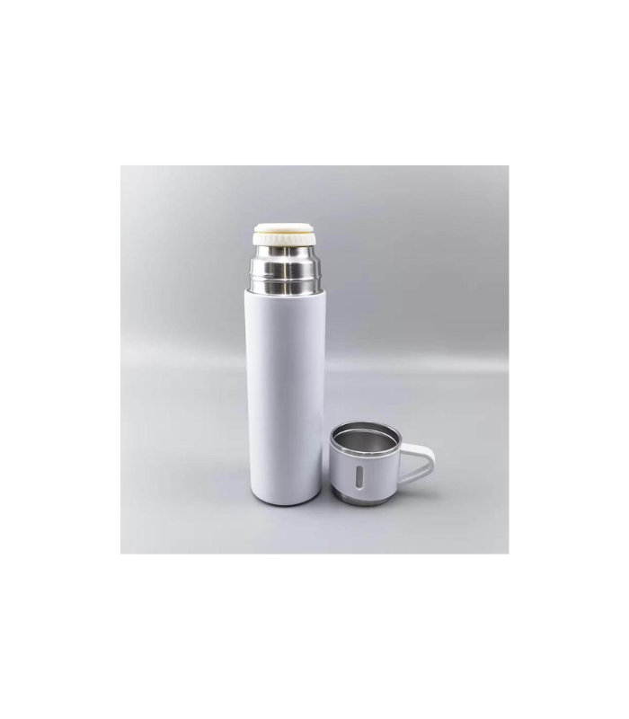 Family Gift Set of basic 500ml double-walled vacuum flask with 2 single-walled cups. Flask is leakproof, keeps drinks hot or cold and contains SS304 inside / SS201 outside. The 2 cups are 140ml each, lightweight with handle and made from SS304. Box packing.