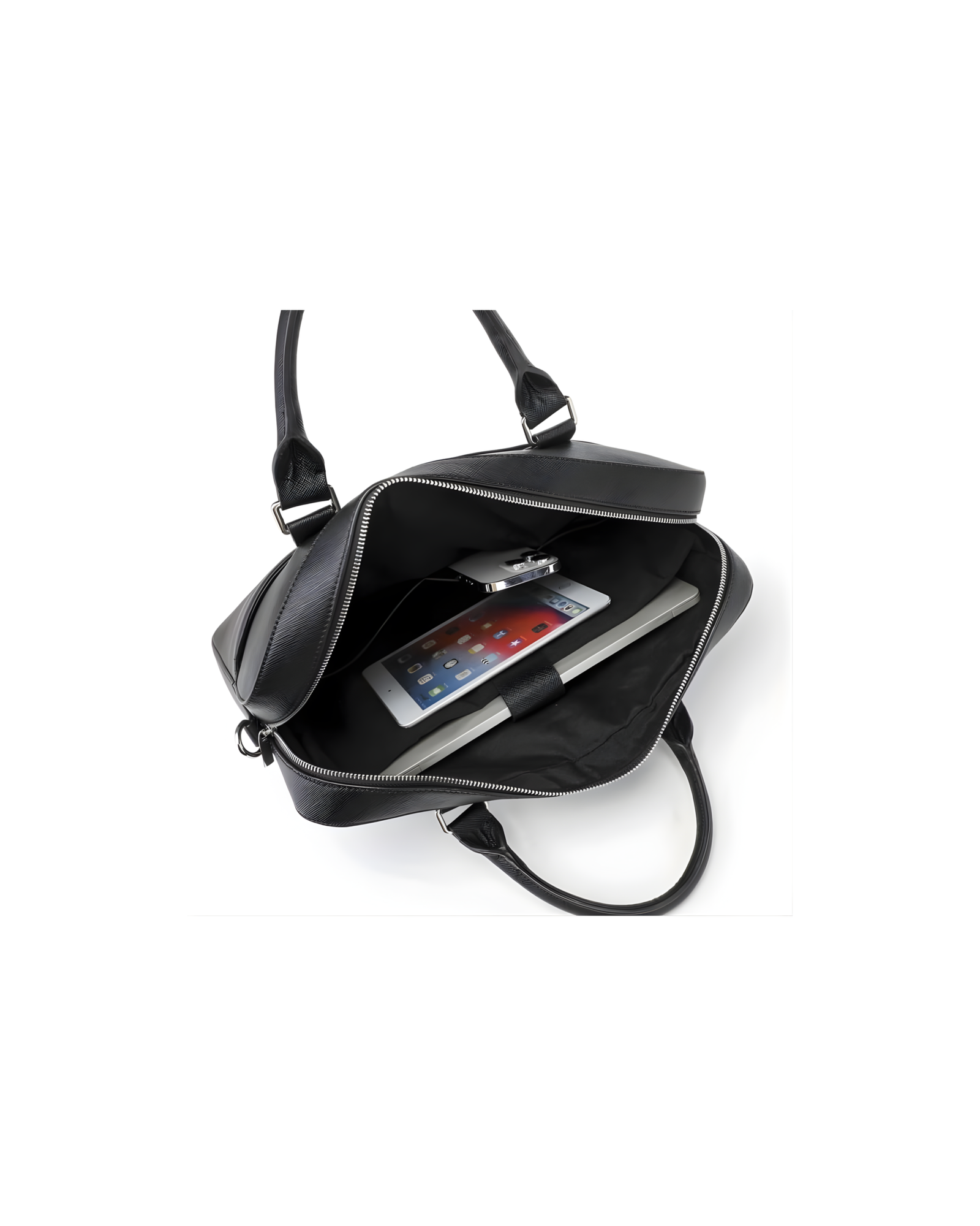 Skross Travel Executive Office Bag is made of luxury saffiano PU leather. This bag comes with a high-strength back trolley strap so you can easily slide it into your trolley while traveling. It has two front pockets for quick access to your essentials and multiple inside pockets, too. Plus, it comes with a removable shoulder strap so you can use it as a body bag when you are rushing or on-the-go. Swiss Design by SKROSS.