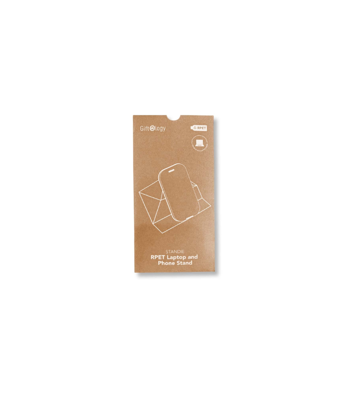 This 2-in-1 laptop and phone stand is made from eco-friendly RPET material in a sleek grey finish, offering a sturdy and sustainable solution for elevating your devices. Standie can be folded in 2 ways, creating different height options suitable for phones or laptop. The stand elevates your laptop by 3 cms, helping you achieve a slightly more comfortable viewing angle. When not used, Standie folds fully flat making it easy to carry on the go.