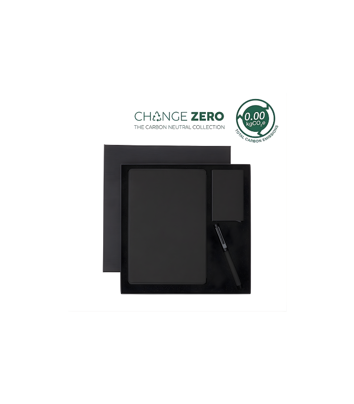 TESSIN – CHANGE ZERO Sustainable Gift Set with Refillable Notebook, Pen & Cardholder – Black