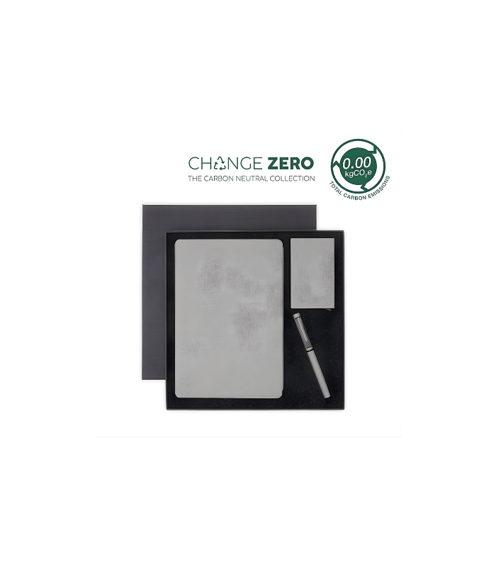 TESSIN – CHANGE ZERO Sustainable Gift Set with Refillable Notebook, Pen & Cardholder – Grey