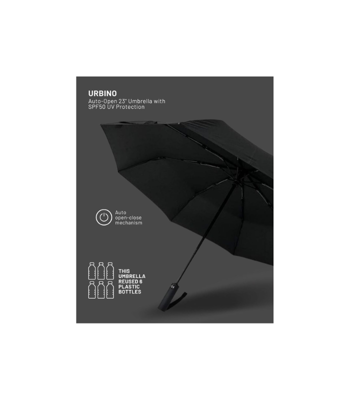 URBINO – Santhome RPET Auto-Open 23″ Umbrella with SPF50 UV Protection – Black